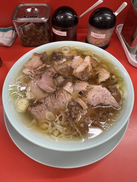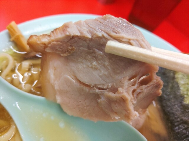 チャーシューもたくさん入っていて美味。切り方も薄切りだけでなく、厚いのやら細長...