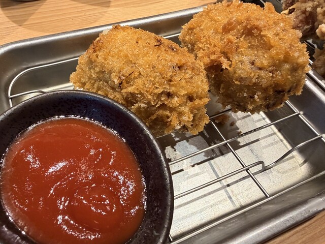 2軒目だったのもあり、 手軽に早めの時間から飲めるこちらに。 テーブル席利用なので、赤星瓶は通常価格。 結果、生ビールスタート! 「鉄板デミどろビーフボール」 ... 詳細を見る