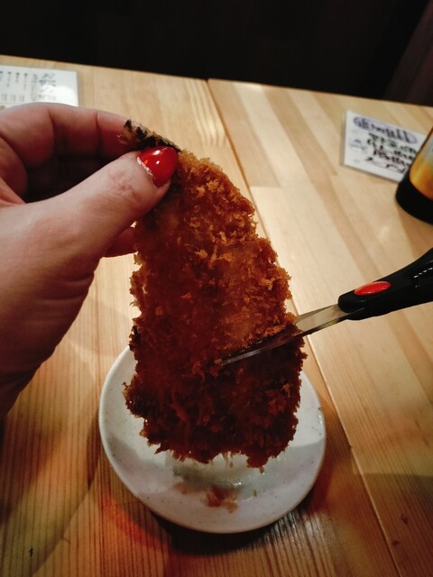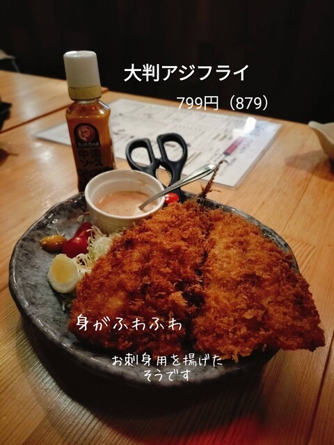 驚いたのは 大判アジフライがキッチン鋏で切って召し上がれ!な大きさ