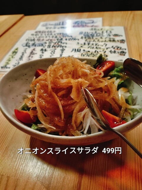 早く出そうな「オニオンスライスサラダ」を注文して お互いノンアルコールビールで乾杯☆彡