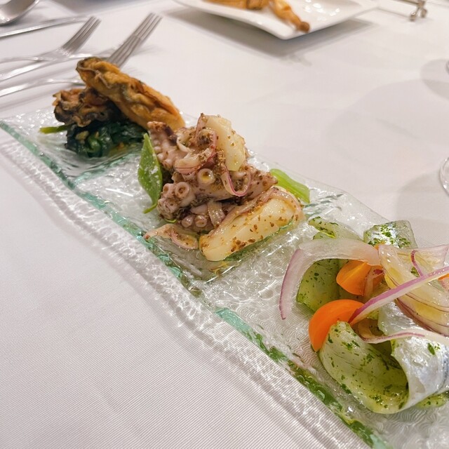 大好きなお店です。今回はグルメ仲間を誘って行きました。いつもお腹パンパンになるコースの一つ下のコースで程よい量でした。 前菜は3種になり、全て魚介。サヨリは生で、タコは半生、牡蠣... 詳細を見る