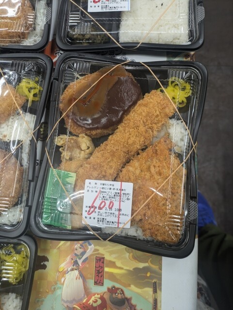 平日7時頃に訪問。 20年位前から前はしょっちゅう通っていたが入るのは初めて。昔は店頭に200円弁当をどっさり出して売っていた。 さて、時間的にはあまりヘビィな弁当類は少なく、... 詳細を見る