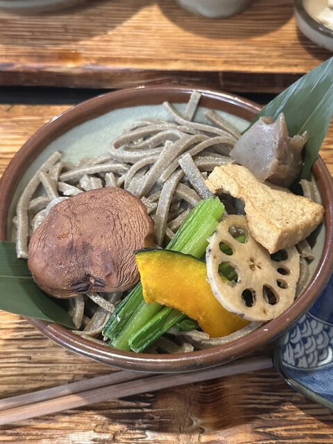 蕎麦だけではなくて野菜もたくさん付いてくるのが毎回とても嬉しいです。