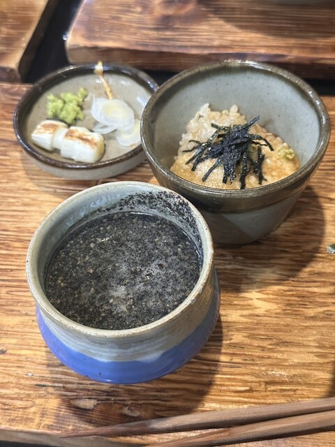 飲みです!と伝え、冷酒をオーダー、届いたお通しは驚きの4点盛り!その上、来店感謝という事でもう一品、柔らかく炊いた大根を頂いた、此方が感謝ですよ!濁り酒を挟み、もり蕎麦をオーダー、此方のもり蕎麦は色々...