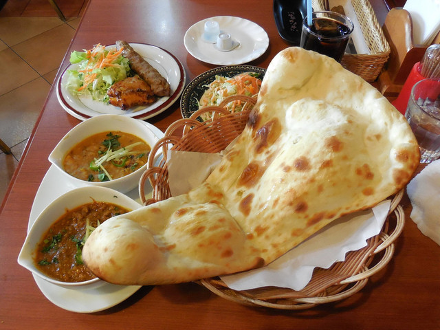 次に、カレーがきましたが1品が結構ボリュームあります。次にナンがきましたが特大サイズw
