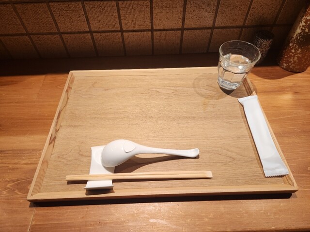 平日のお昼遅めに、行列ができていないか心配しながら恐る恐る伺うと、並ばずすぐにご案内いただけました。カウンターのみの店内はジャズが流れていて落ち着いた、和モダンな雰囲気です。