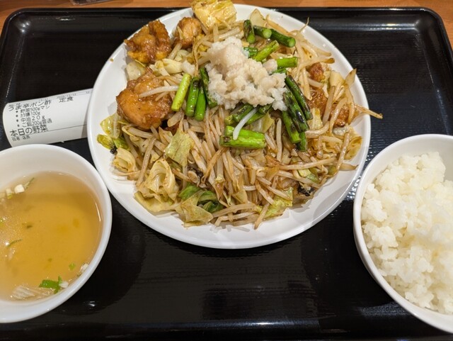 〘ポン酢味豚肉野菜炒め定食¥1,0...