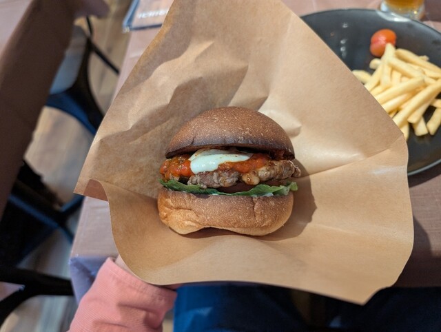 バーガーのバンズは、外側はカリッと香ばしく、中はふんわり。食感のコントラストが楽しく、とても美味しかったです。