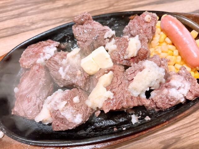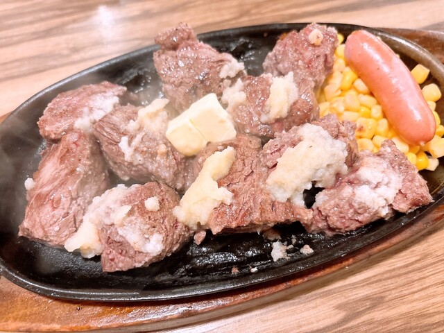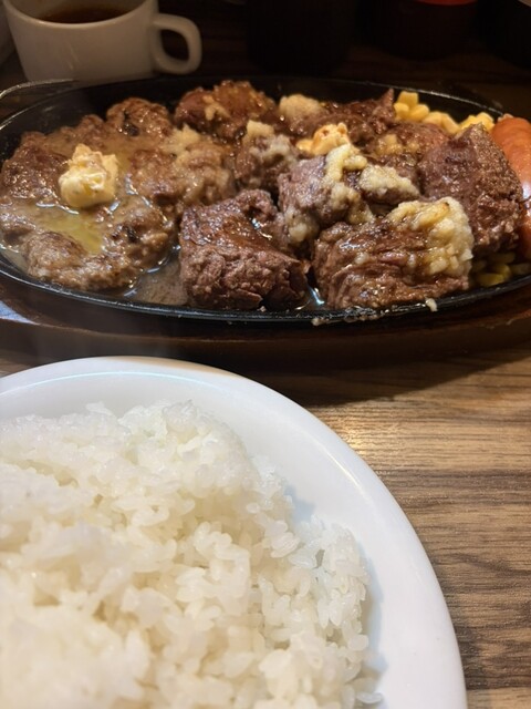 ステーキは1枚肉ではなく複数の切り身で提供されますが、1ポンド以上の量に感じました。肉はハラミやサガリの感じ...