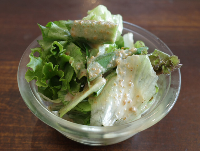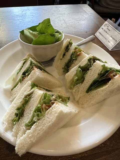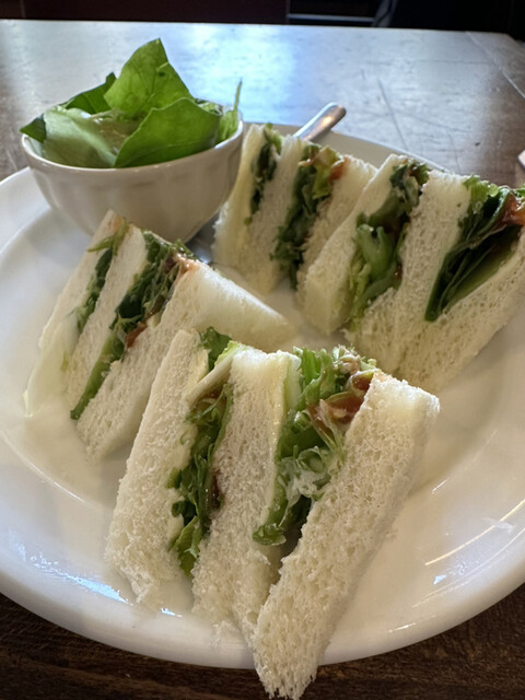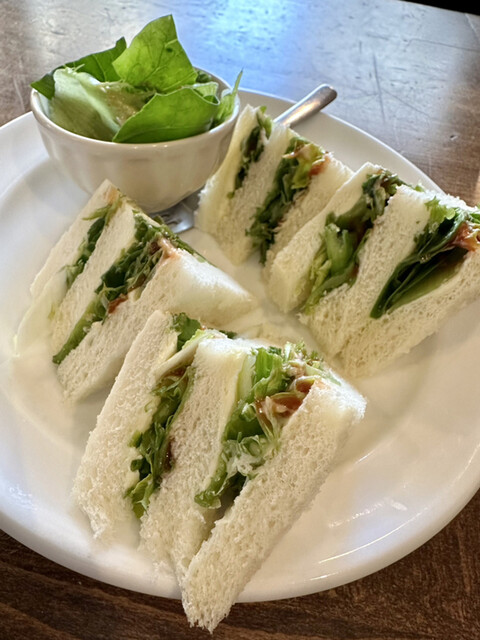 サンドイッチの横にあるちょこんと乗ったサラダが、ドレッシングまで美味しい。