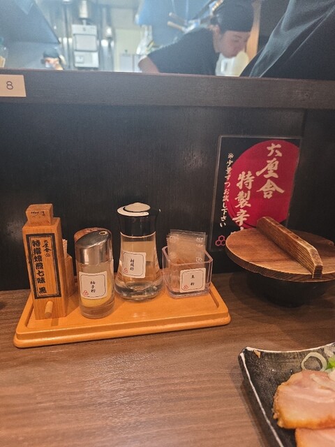 休日13:00到着。 店前には約20人待ち。さすが観光地ソラマチ。ですが1名だったため、10分ほどで先にご案内。 券売機で特製生七味つけめん大盛り1,500円を購入。 ... 詳細を見る