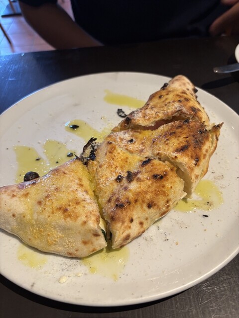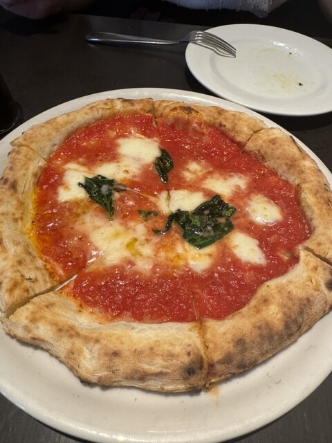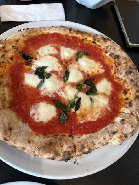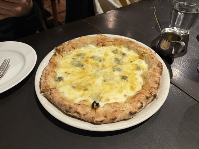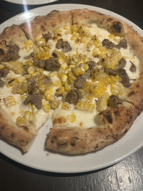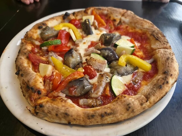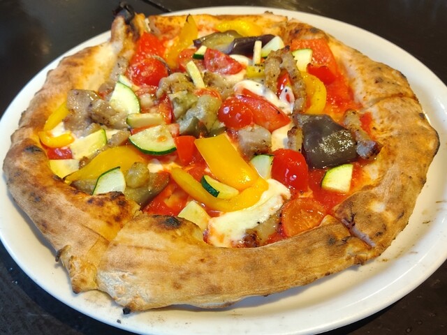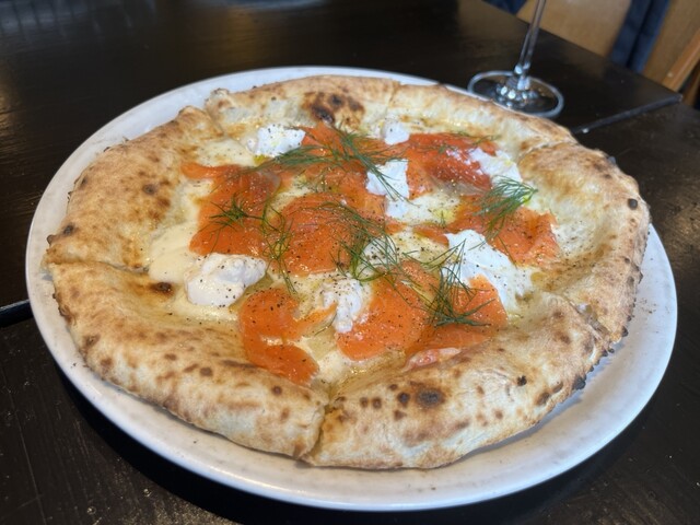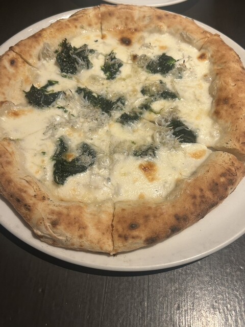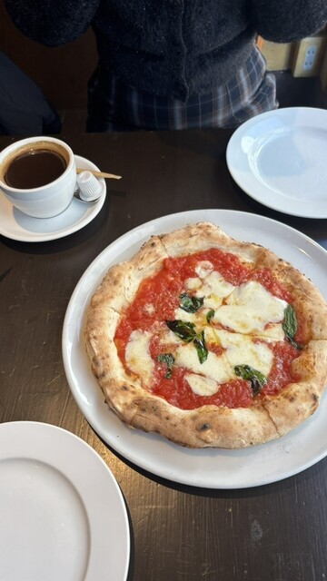 ピザは薪窯で焼いているみたいで、生地もちもち、縁はこんがりさ...