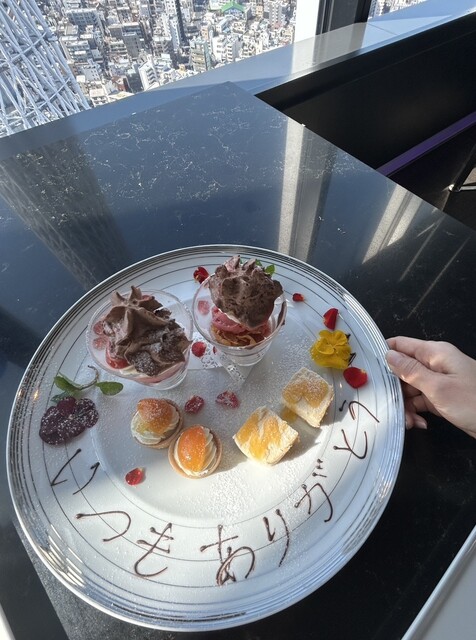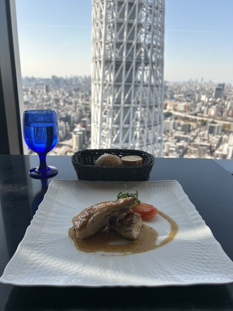 良い眺めのところでお食事がしたいな?と…リサーチしてこちらのソラマチ最上階31階でランチ…正面に東京スカイツリーを眺望…11時開店なので予約もその時間に合わせて以下のコースを注文…開店前は10人ほどの待ち ⋯ ※平日限定【TOP LUNCH】サラダ、アミューズタワー、メイン1種 ※デザートカフェ... 詳細を見る