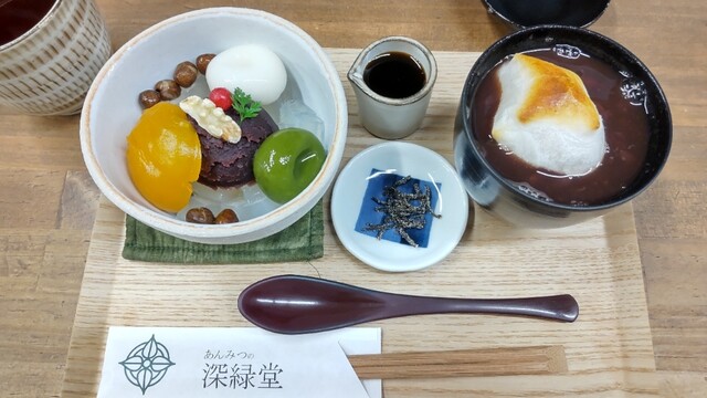 お久しぶりのあんみつの深緑堂さん。向島に用事があったついでに寄りました。土曜日のお昼時でしたが狭い店内は満席。ご夫婦御二人だけで営まれていて御二人共に調理にまわる為にオペレーションが大変そう。テイクア...
