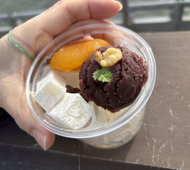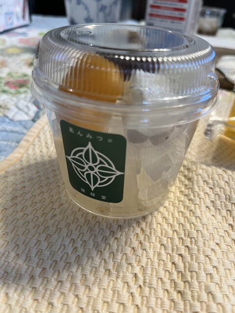 先日、桜橋近くのあんみつの深緑堂にて名物のあんみつをテイクアウトいたしました。