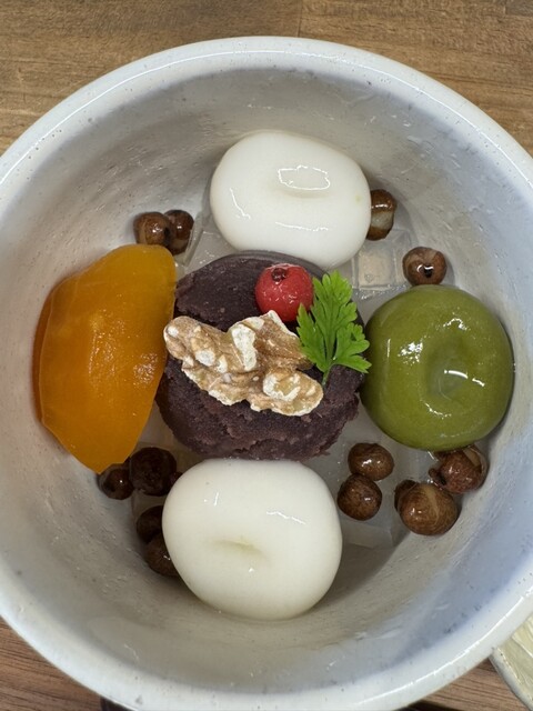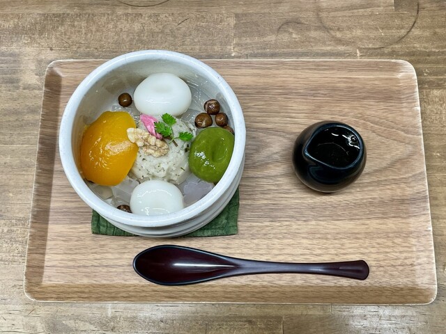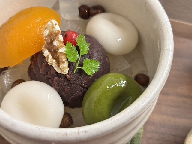 寒天も癖がなく、硬さもちょうど好きな硬さ、白玉はもちもちだし、黒蜜...