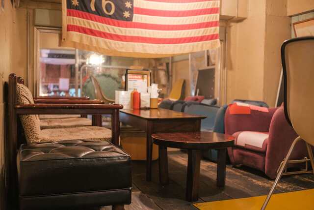 浅草通りからふた筋ばかり入った住宅街にあり、突如現るるアメリカン、といった感じ。