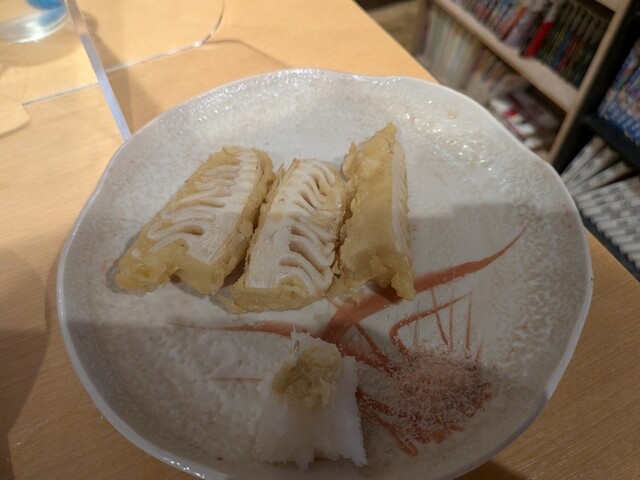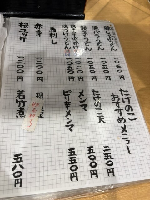もちもちの太麺は喉越しもよく、とても美味しかったです。たけのこ天も香りも良く、絶品でした。