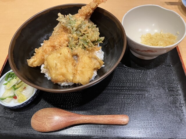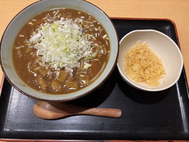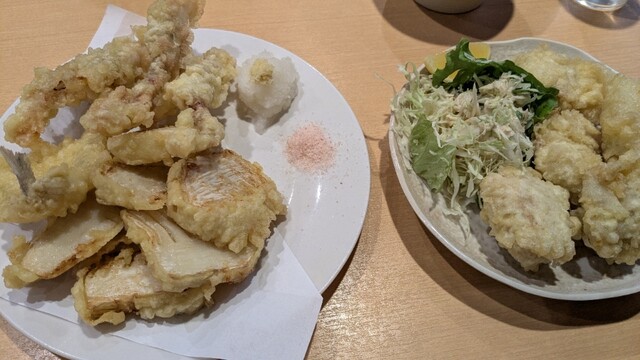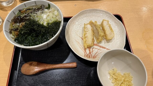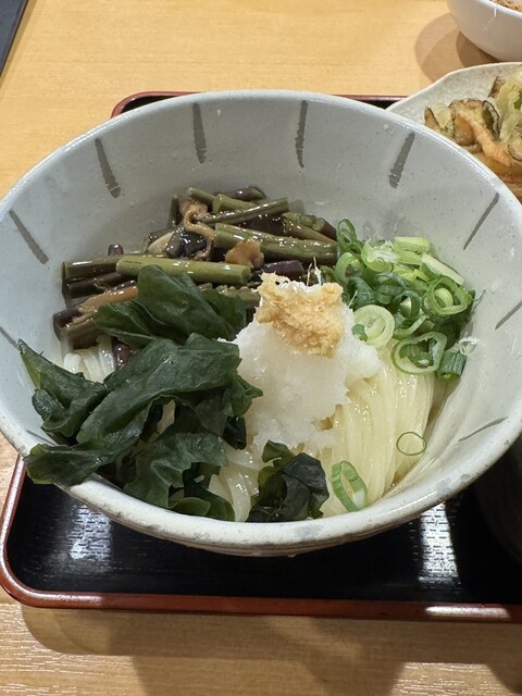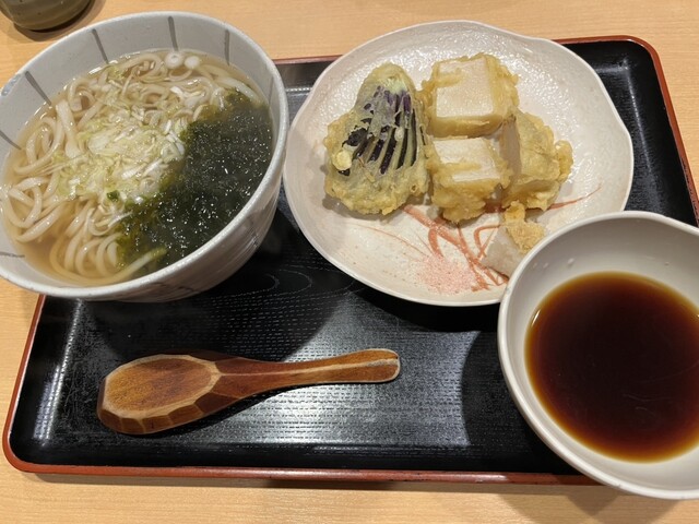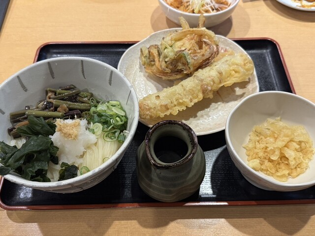たけのこ天とかき揚げが付いたセットを、太麺でいただきました。