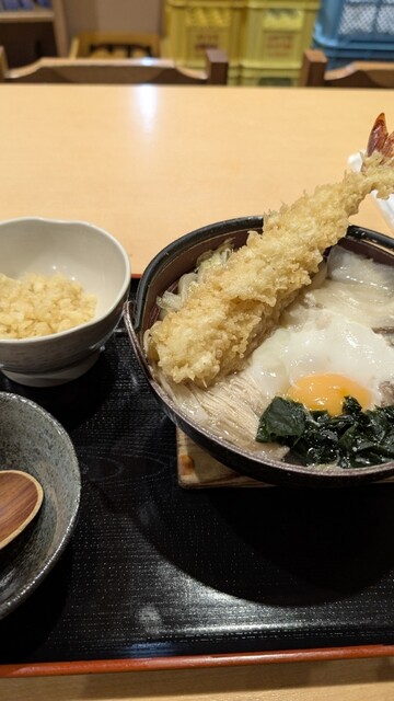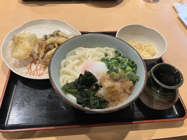 しっかりとコシのある讃岐うどんで、食べ応えも十分。天ぷらもサク...