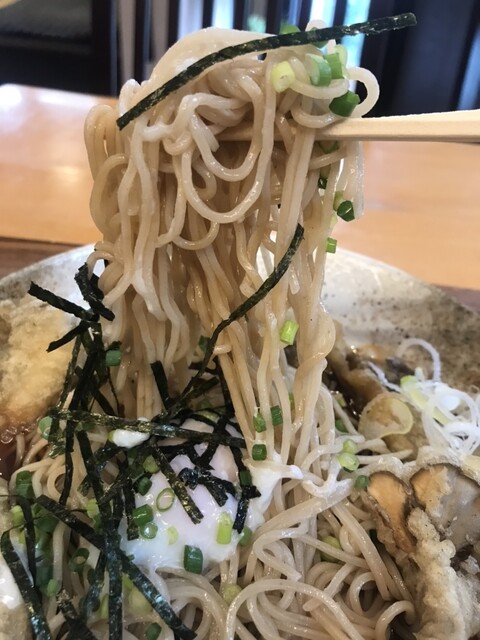 蕎麦のコシと天ぷらのサクサクの相性も抜群です。天ぷらはつゆに浸しても最後の方までサクサクの食感は残っていました。