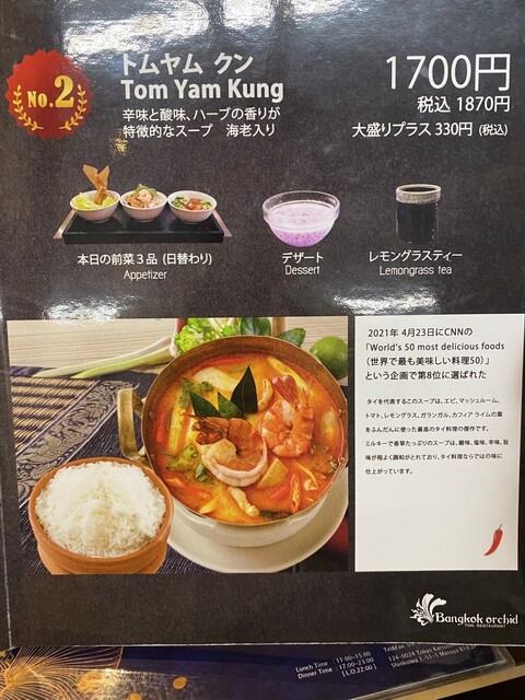 『Bangkok Orchid』は、2010年から続く人気タイレストランです。ミシュランビブグルマンの2016、2017に選ばれたお店としても有名で、大使館のパーティ料理も請け負っている実力派。