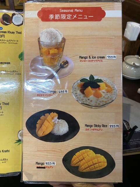 ドリンクは「ナムマムアン(マンゴージュース)」で、気分はタイリゾート。