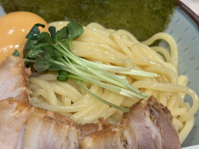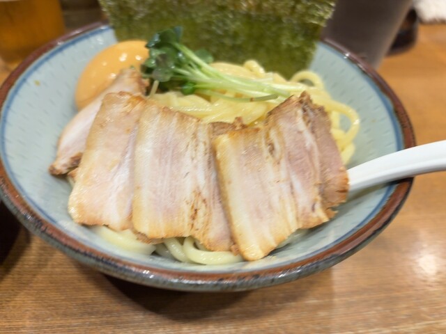 食券を購入して店員さんに渡すと、カウンターの食べ進み具合を見ながら麺茹でを開始しているようで、着席してから提供までが非常にスムーズ。体感でもかなり早く、無駄のない動きに感心しまし...
