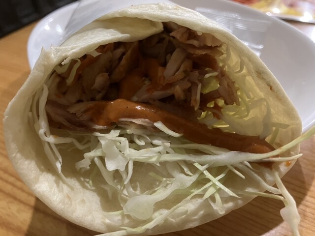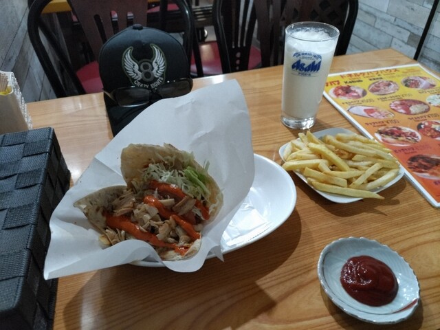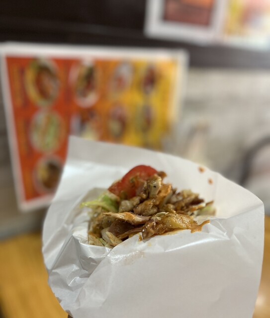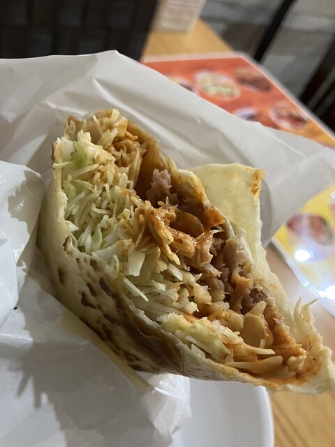 この周辺は客引きが多いのでイートインのある店で食べる事に。 【ケバブラップ】¥700 スーパーホットでオーダー。 長い2本のナイフを何度も擦り合わせて、肉をそぎ落としてい... 詳細を見る