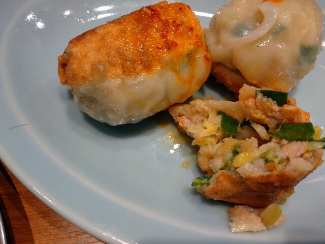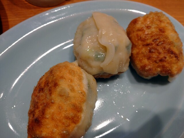 餃子は、半面を揚げ焼きにしているような感じで、カリカリになっています。