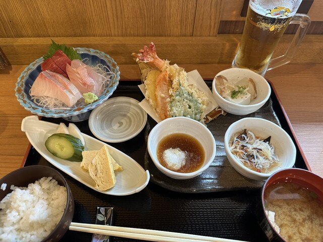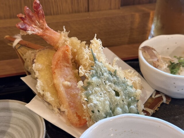刺身は美味しかってんけど、少し残念やったんが、天ぷら。。。素材はちゃんとした素材つこてるやろーけどサクサクやけど揚げたてを感じれへんかったのと、味噌汁がぬるくしょっぱかった