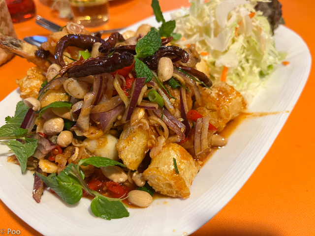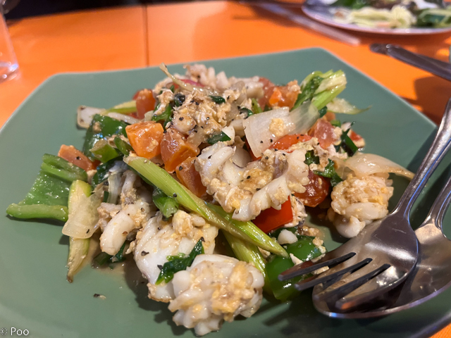 タイ人女性が「スミマセン、カラオケします、ゴメンナサイデス。」と言いに来てくれ「どうぞ~!」と言いましたが、それが向かいに座る友人と会話も出来ない、大音量。