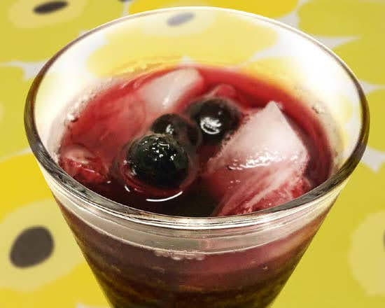 カキ氷や駄菓子なども売られている中、北欧ミートボール丼とビルベリージュースを注文。