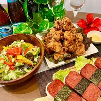 当店看板商品であるハワイの唐揚げ「モチコチキン」の食べ放題が付いたお得なコースです!定番のハニーマスタード、人気のチリマヨ、タルタルのソースを絡めながら満足いくまで「モチコチキン」をご堪能下さい。他にも、前菜の盛り合わせ、サラダ、〆のスパムにぎりもついて大満足のコースです!!