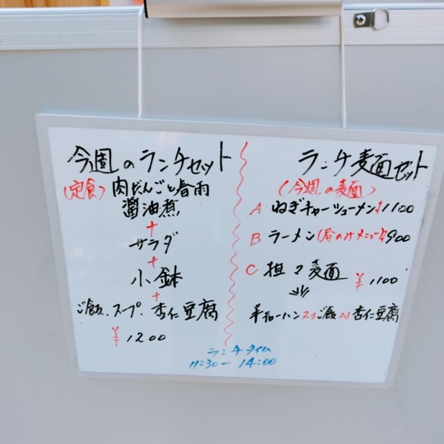 ランチは週替わり定食が1種類と麺セットが3種類。お目当ての白麻婆豆腐は無かったけれど、定食セットを頂こうかな。