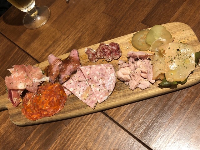 ハムやソーセージの盛り合わせはハーフなのに7種もあってうれしい。