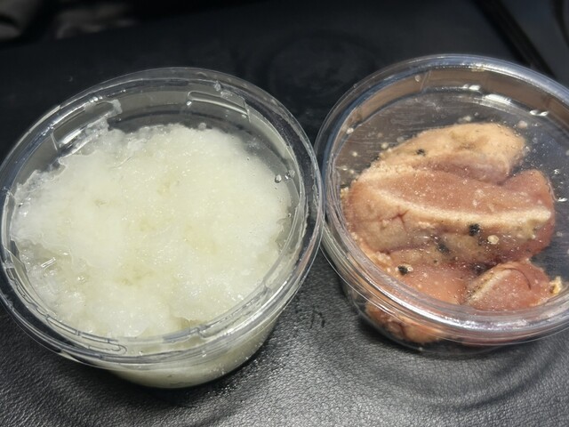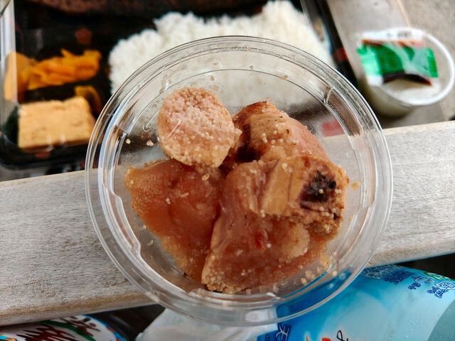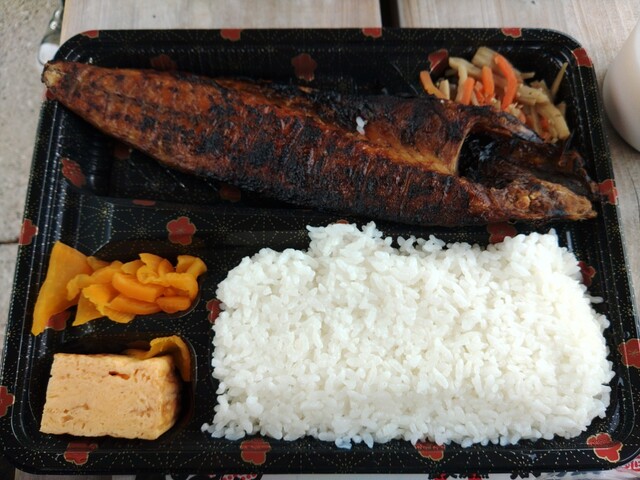 を2個と単品の焼サバ1個を受け取って、赤カブのリヤボックスに入れる。