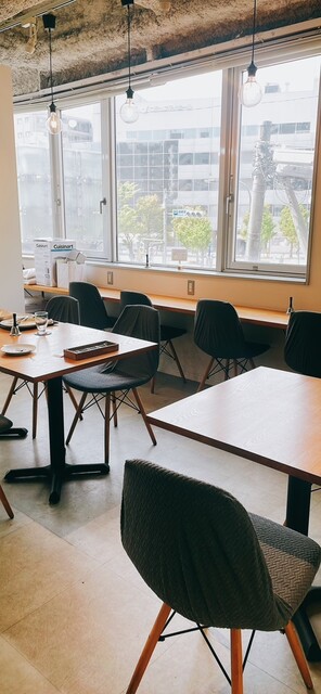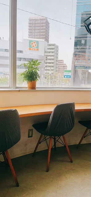 窓に面した明るいカウンター席が10席ほど