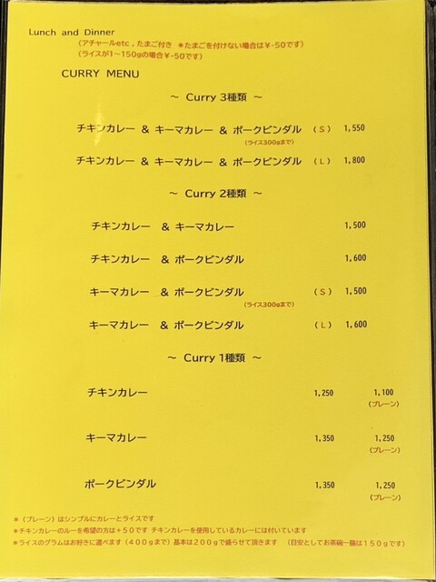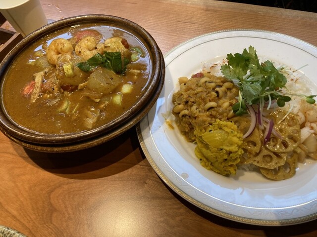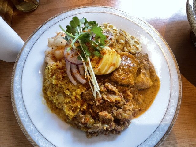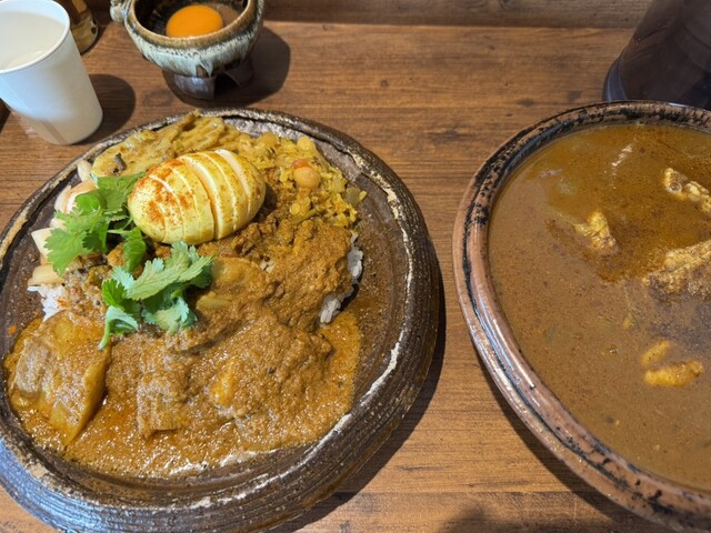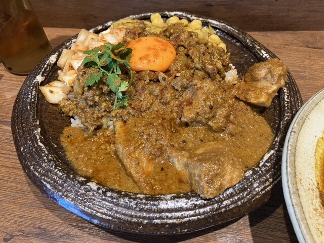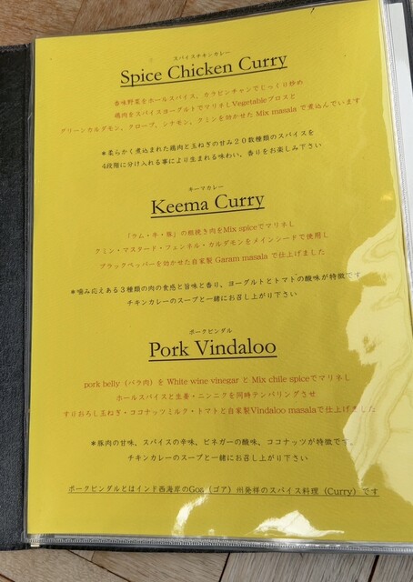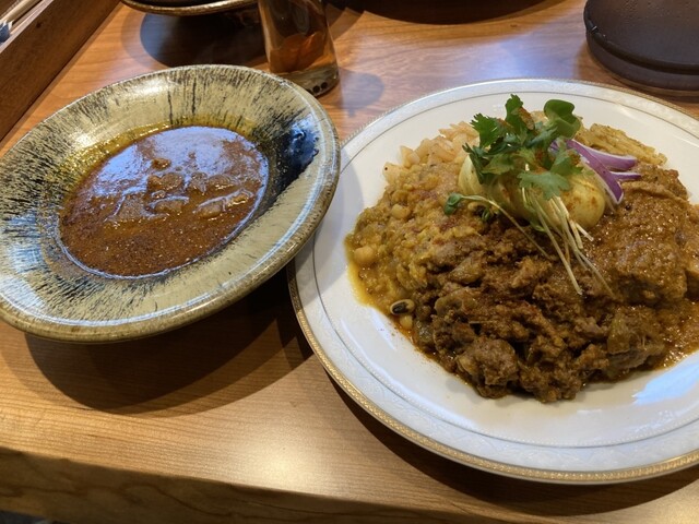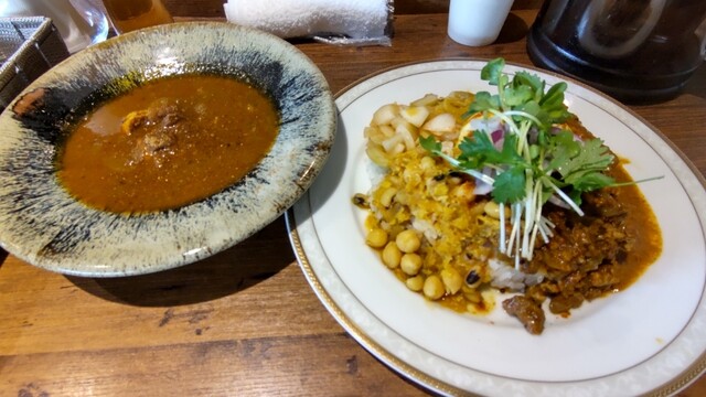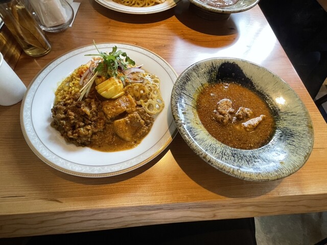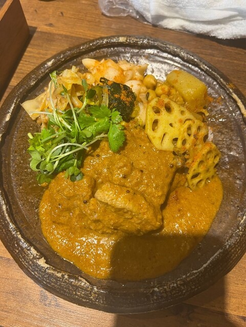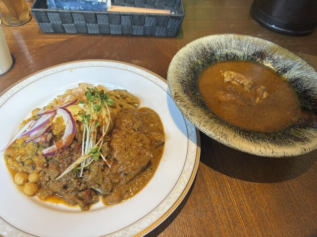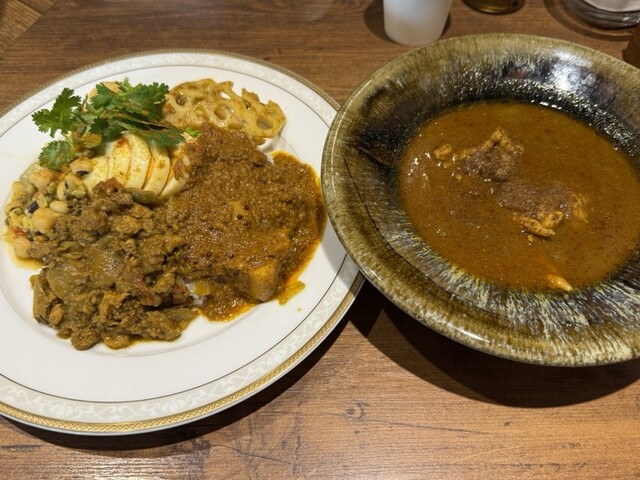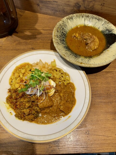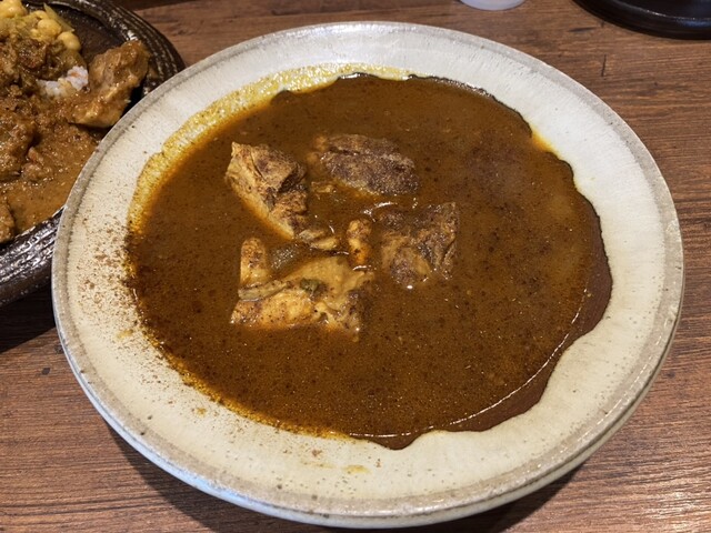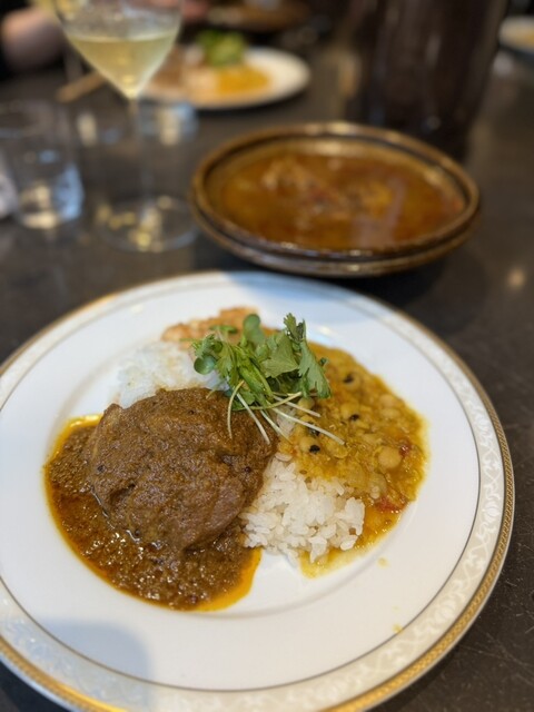 3種類のカレーを頼むとポーク、キーマ、豆のプレートとチキンカレーの4種類があり、どれもスパイスが効いていてとても美味しかったです。特にポークはお肉がホロホロで、キーマはお肉感が強く食べたことのない肉感...
