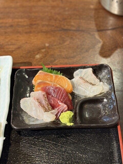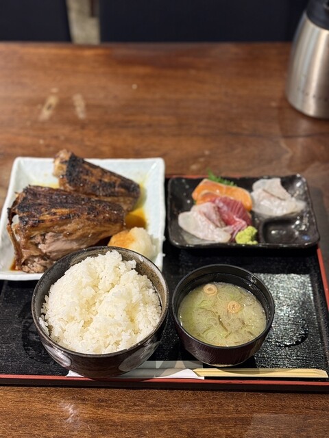 平日12時前着、少しだけ列になっていましたがさほど待たずに案内されました。 気になっていたランチ、入口に飾られている写真を見ながらわくわくしながら入店。 ○本日の本鮪スペシャル(私) ○鮪カマ炭火焼きとお刺身のセット 本鮪は宮城県塩釜のものとのこと カマ焼きは脂がのっていてプルンと... 詳細を見る