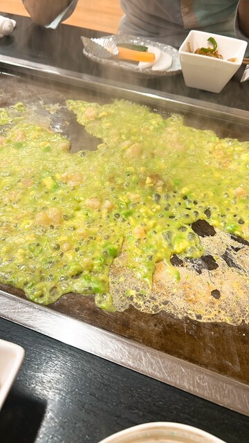 お店の2階の座敷席で、おすすめを食べてみた。 ⚫︎ウニのもんじゃ 3800円税込 独自のルートで仕入れている、チリ産の肉厚でツヤツヤしたウニが大量に入っていて、濃厚な味。見た... 詳細を見る