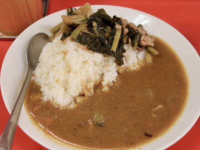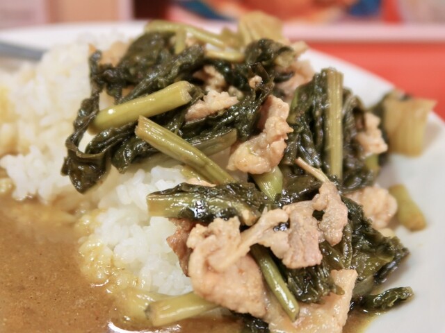 なら、ご飯。カレーとやよいのあいがけ飯。具大盛りw。