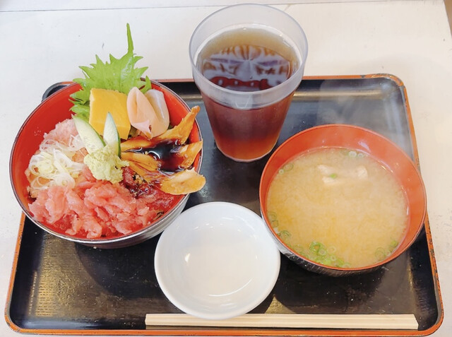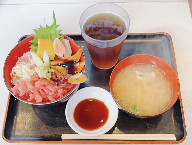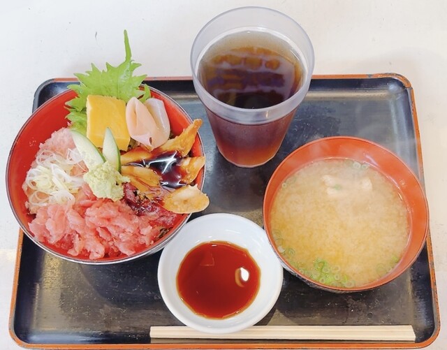 メニューは「特選市場丼」「中とろ丼」「うに入市場丼」「まぐろ丼」「ねぎとろ丼」など海鮮系の丼が豊富です。