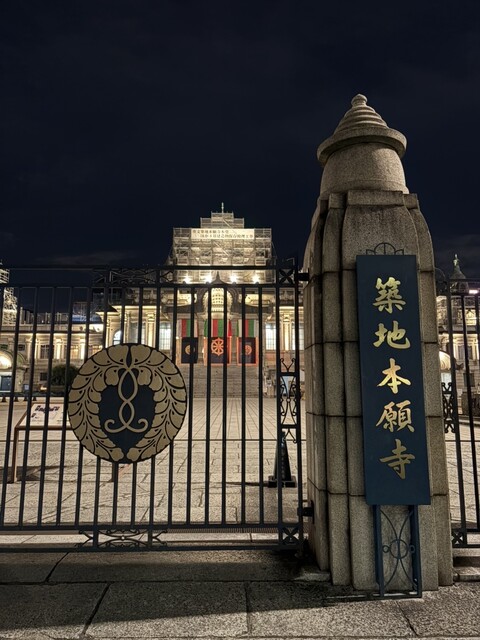 築地駅から道すがら築地本願寺のライトアップ... (by ムロさん)