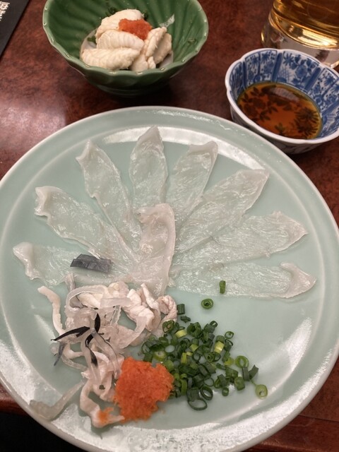 ふぐ刺しをたっぷり食べたいという方にオススメ。 ふぐ刺し1人前をお一人様ずつご提供。 大変人気があるコースです。