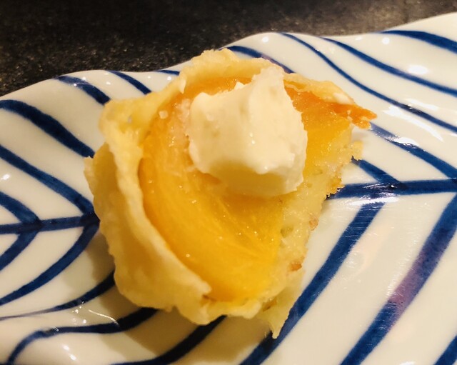 柿の天婦羅とクリームチーズ