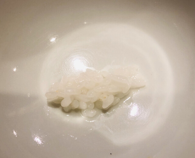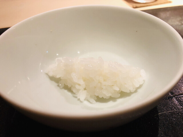 サワラは幽庵焼き、オクラは土佐揚げ、柿は天婦羅。旬の走り、盛り、名残りを一皿にした鉢肴。サワラは藁焼きではなくても美味しい。さすがの火入れ具合。柿とクリームチーズが日本酒と合うのに驚く。凌ぎ替わりに、土鍋ご飯四変化の第一弾、アルデンテの土鍋ご飯。米そのものを味わうパフォーマンスが面白い。
