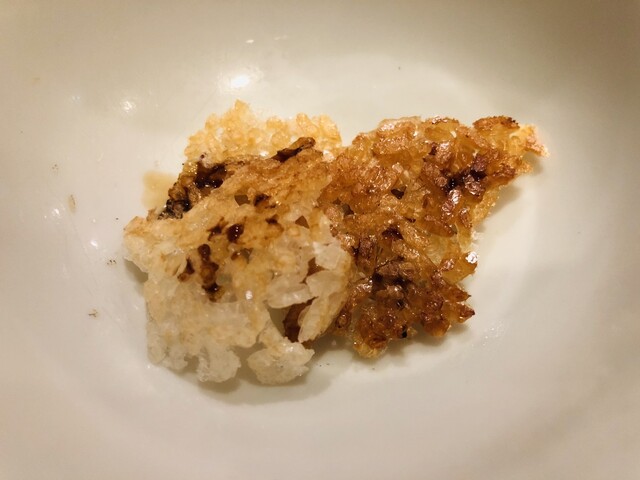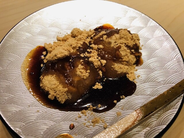 今回も店中に香りを漂わせる藁焼きに感激した。この時期の戻りガツオの脂の乗りは、一年で一番美味しくカツオを味わえる。旨味たっぷりの赤身と、藁で燻された表面の焼き上がりが、豪快な漁師料理と繊細な京料理の良いとこ取り。カツオという日本らしい食材を愛おしむように楽しむには、これ以上ない食べ方ではないだろうか。