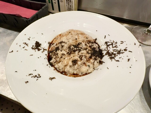 そんなコースの中でのハイライトはフレッシュ黒トリュフとマデラソースのクリームリゾット。クリームリゾットはクリーミーながら米の粒立ち感もとどめていて、マデラソー...