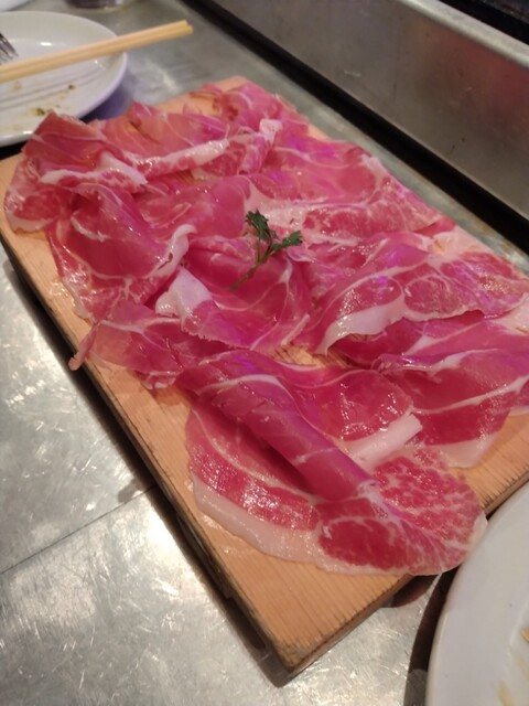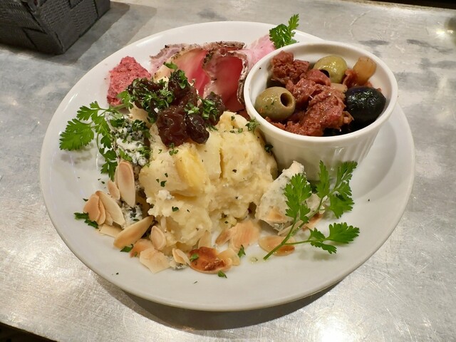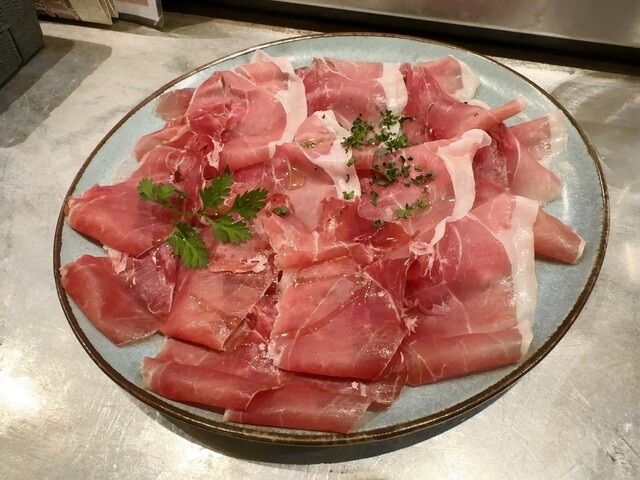 ワインがウリの店だから、イタリアンでは有るもののワインバーの趣。今回注文の贅沢コースも生ハムやチーズにパテ、オムレツなどワインに合うつまみと料理のオンパレードだ。
